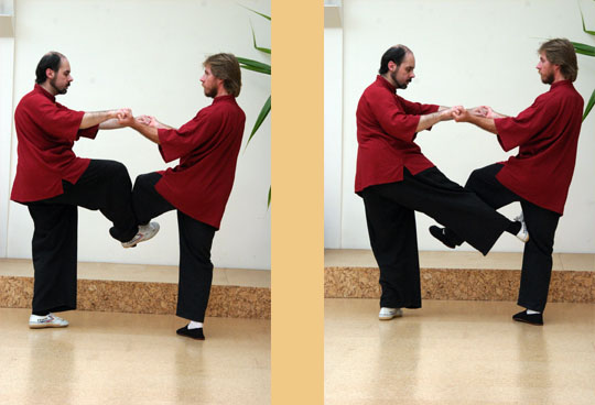 Egy-egy mozdulatsor a Chi Sau (ragadós kéz), és Chi Geuk (ragadós láb) gyakorlatokból